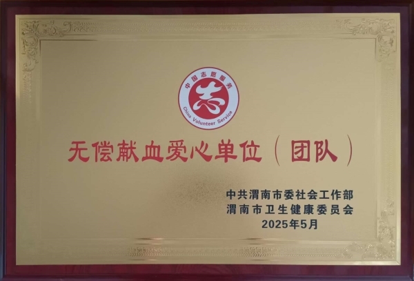 2025年5月29日公司榮獲無償獻血愛心單位(團隊)稱號