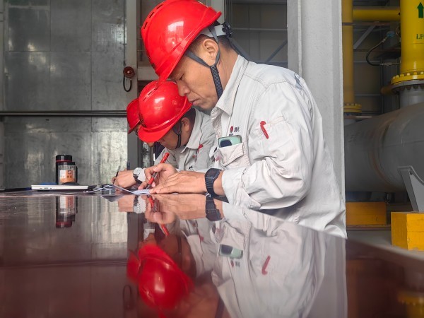 中修現(xiàn)場,紙筆成為參檢人員的“戰(zhàn)斗利器”。動火分析點,他們圍在桌前,筆尖在紙上飛速滑動,精準記錄設(shè)備參數(shù)與檢修節(jié)點,每一份簽字與采樣分析,都成為了保障參檢人員的“守護符”。即使身在檢修現(xiàn)場,沒有桌椅也趴在墻上逐字逐句校驗。每一項簽字確認都嚴謹對待,每一筆都透著對檢修工作的負責。這些紙筆間的默默耕耘,構(gòu)筑起中修守護的“無形防線”。